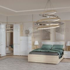Цвет кровати и ящика с полкой на главном фото: Коричневый/Дуб молочный.