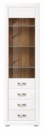Великолепные белоснежные фасады коллекции удачно контрастируют со вставками из «ореха лион», продолговатые металлические ручки добавляют изящества, а подсветка стеклянных полок выгодно подчеркивает древесную структуру дерева.