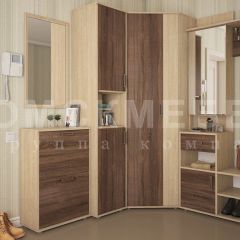 Модульная прихожая "Порту" состоит из: - прихожей; - стеллажа; - тумбы для обуви; - шкафа-пенала; - шкафа 2-х дверного; - шкафа углового. Выполнена из ЛДСП в цвете: корпус - дуб сонома, фасад -дуб сакраменто темный.