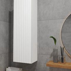 Белый шкаф с рифлёным фасадом будет отлично и стильно смотреться как в ванной, так и в туалете.